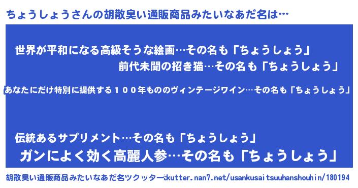 | 意味不明あだ名 | 『住所不定無職ちょうしょう(10歳)』 |