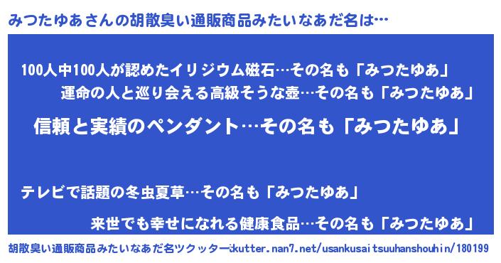 | ヘコむあだ名 | 『みつっちょ』『みつたゆあ(震え声)』 |