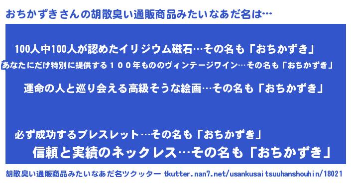 | 意味不明あだ名 | 『おちかずきフォーエバー』 |