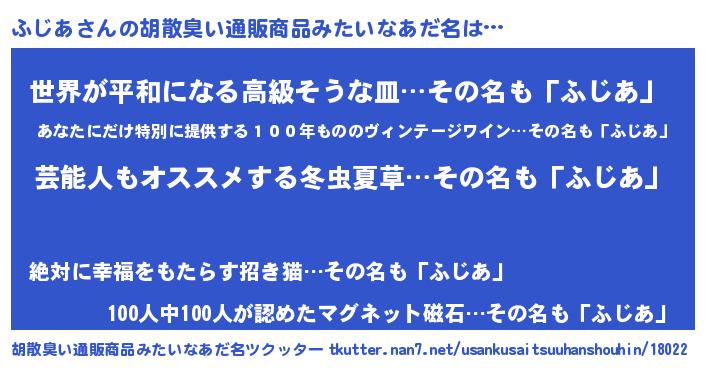 | ヘコむあだ名 | 『酢こんぶ』『ふじあ(爆)』 |