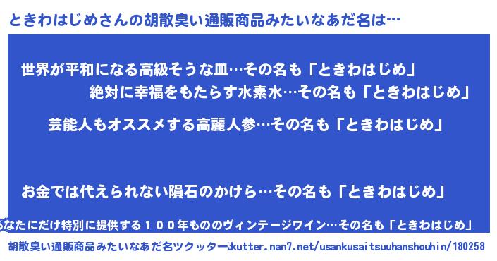 | 意味不明あだ名 | 『自称ときわはじめ』 |
