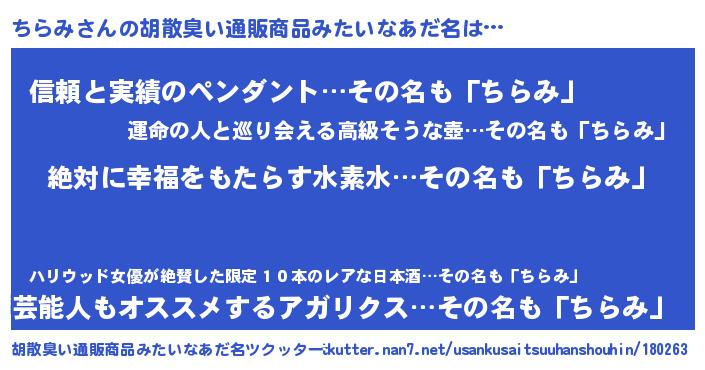 | ヘコむあだ名 | 『ちらみ(震え声)』『ちらぷりん』 |