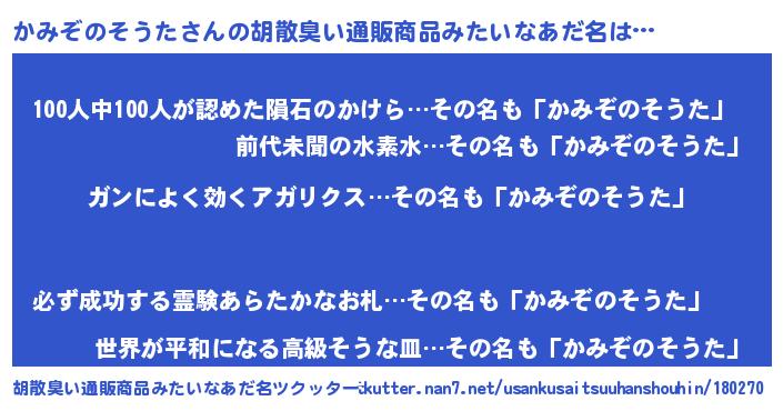 | 意味不明あだ名 | 『自称かみぞのそうた』 |