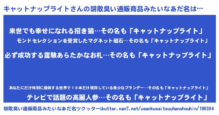 | 男性向けラノベタイトル風あだ名 | 『キャットナップライトの憂鬱』 |