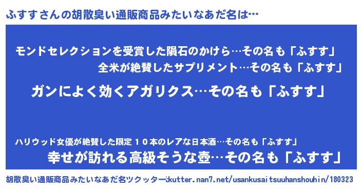 | 意味不明あだ名 | 『自称ふすす』『眠気覚ましガムふすす味』 |