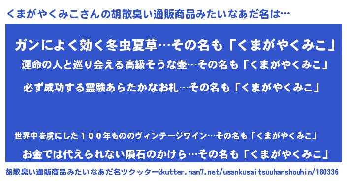 | 女子向けラノベタイトル風あだ名 | 『(仮)くまがやくみこのやんごとなき事情』 |