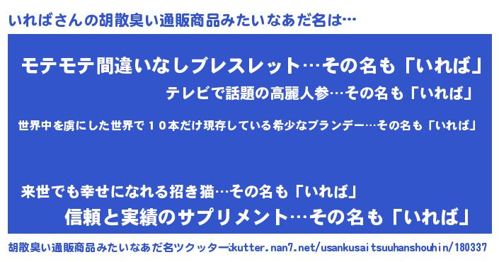 | 男性向けラノベタイトル風あだ名 | 『この素晴らしい世界にいればを!』 |