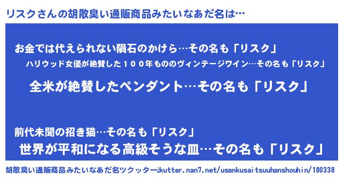 | 意味不明あだ名 | 『とにかく怪しいリスク』 |