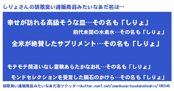 | 意味不明あだ名 | 『とにかく怪しいしりょ』 |