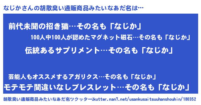 | 意味不明あだ名 | 『とにかく怪しいなじか』『自称なじか』 |
