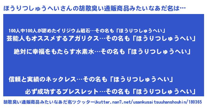 | ヘコむあだ名 | 『ほうりつしゅうへい(遠い目)』『ほうにー』 |