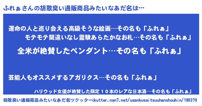 | 意味不明あだ名 | 『とにかく怪しいふれぁ』 |