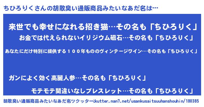 | ヘコむあだ名 | 『ちひろりく(笑)』『ちひもー』 |