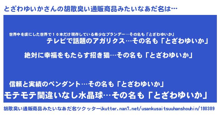 | 男性向けラノベタイトル風あだ名 | 『とざわゆいかという概念が存在しない退屈な世界 』 |