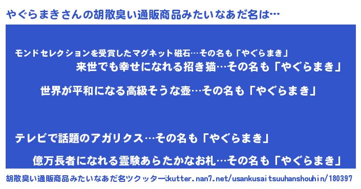 | 欧米人風あだ名 | 『やぐらまきクリステル』 |