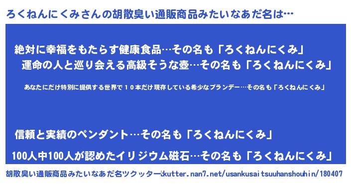 | 意味不明あだ名 | 『住所不定無職ろくねんにくみ(77歳)』 |