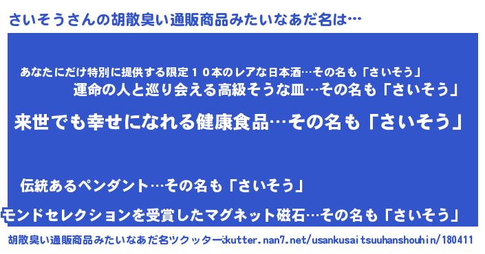 | ヘコむあだ名 | 『さいそう(笑)』『酢こんぶ』 |