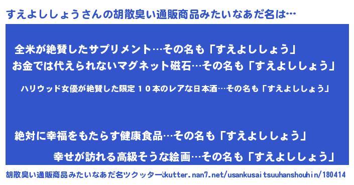 | 欧米人風あだ名 | 『トリンドルすえよししょう』 |