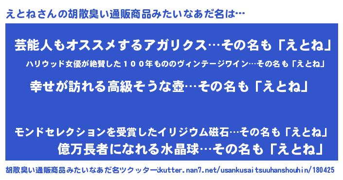 | 欧米人風あだ名 | 『えとねクリステル』『トリンドルえとね』 |