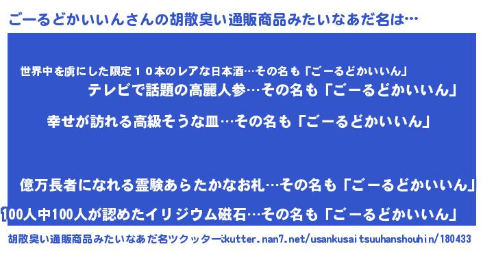 | 男性向けラノベタイトル風あだ名 | 『やはりごーるどかいいんの青春ラブコメはまちがっている 』 |