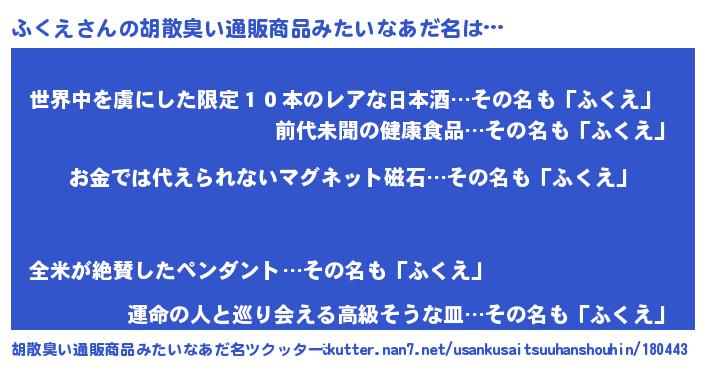 | 男性向けラノベタイトル風あだ名 | 『転生したらふくえだった件』 |