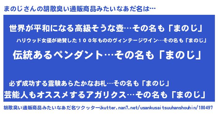 | 意味不明あだ名 | 『とにかく怪しいまのじ』『自称まのじ』 |