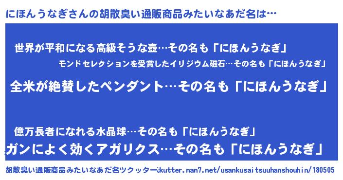 | 意味不明あだ名 | 『とにかく怪しいにほんうなぎ』 |