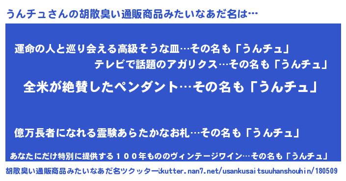 | ピコ太郎風あだ名 | 『ウン八郎』『ピウ六郎』『ウコ一郎』 |