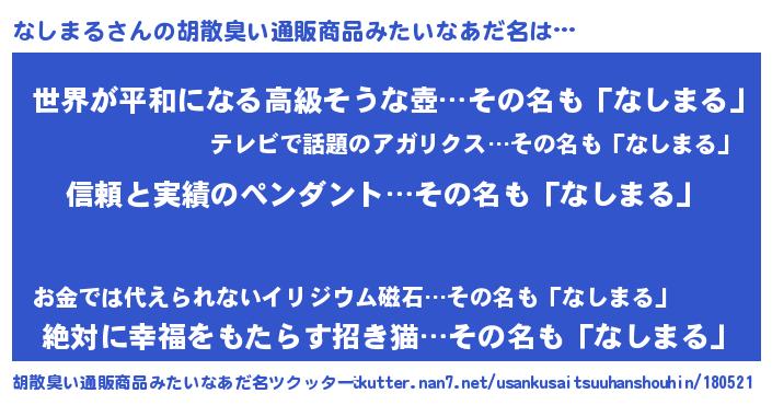 | 意味不明あだ名 | 『とにかく怪しいなしまる』 |