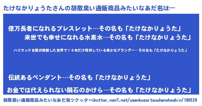 | 意味不明あだ名 | 『住所不定無職たけなかりょうた(74歳)』 |