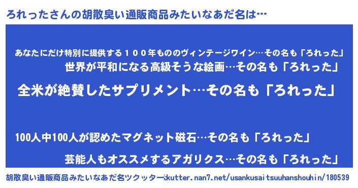 | 意味不明あだ名 | 『とにかく怪しいろれった』 |