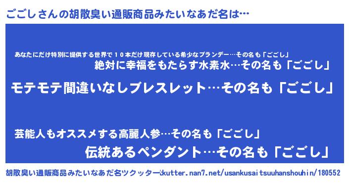 | ヘコむあだ名 | 『ごごにー』『ごごっちょ』 |
