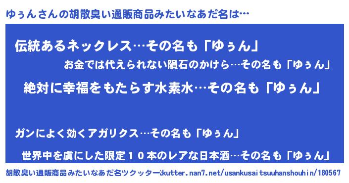 | ヘコむあだ名 | 『ゆぅん(震え声)』『ゆぅ太郎』 |