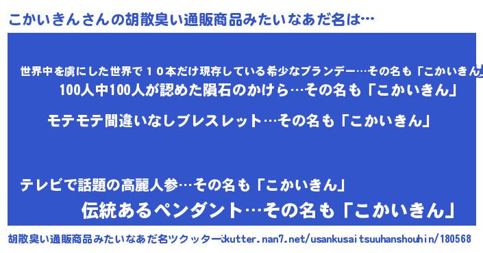 | 意味不明あだ名 | 『ペロリンこかいきん』『自称こかいきん』 |