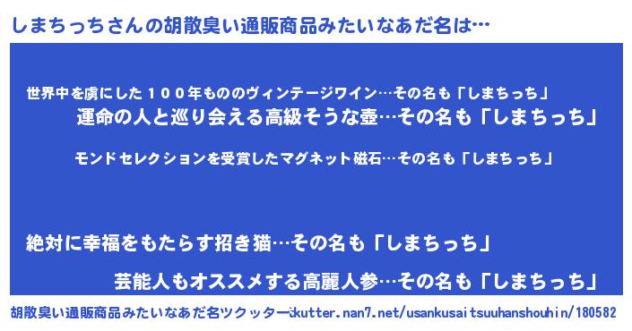 | 意味不明あだ名 | 『眠気覚ましガムしまちっち味』 |