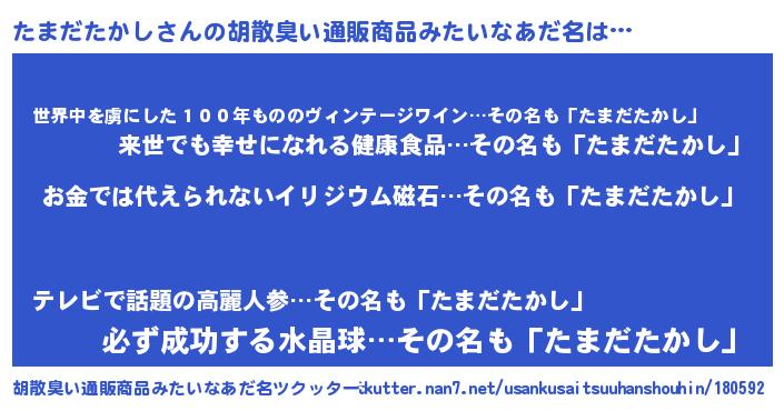 | ヘコむあだ名 | 『たまもー』『たまだたかし(小並感)』 |