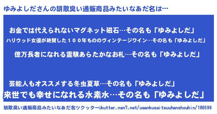| ヘコむあだ名 | 『ゆみっふぃ~』『ゆみよしだ(笑)』 |
