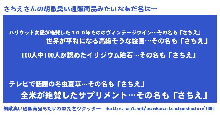 | ヘコむあだ名 | 『さちっ子』『つくし』『さちふぇ~』 |