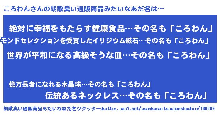 | ヒーロー風カッコイイあだ名 | 『ウルトラころわんマン』『ネオコロワン』 |