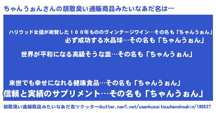 | 意味不明あだ名 | 『ちゃんうぉんフォーエバー』 |