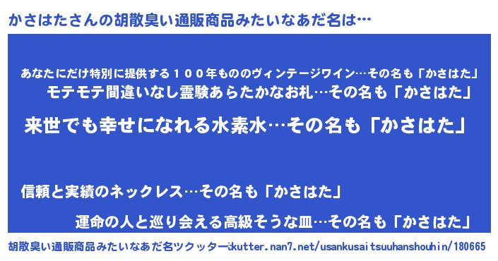 | ヘコむあだ名 | 『かさはた(震え声)』『酢こんぶ』 |