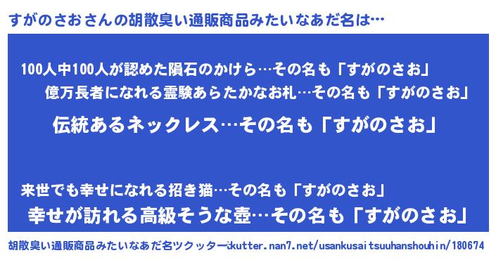 | 意味不明あだ名 | 『とにかく怪しいすがのさお』 |