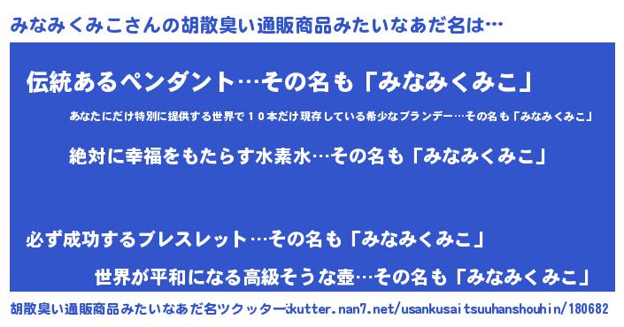 | 意味不明あだ名 | 『永久保存みなみくみこ』 |