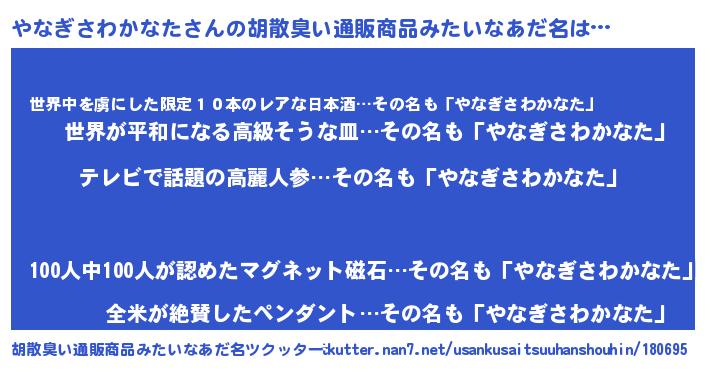 | 意味不明あだ名 | 『自称やなぎさわかなた』 |