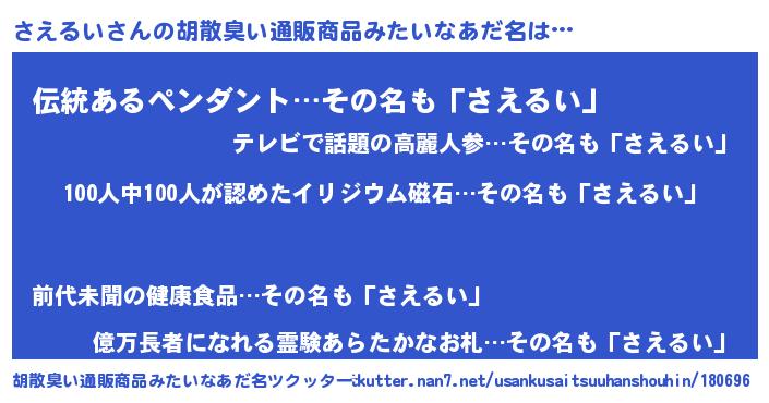 | ヒーロー風カッコイイあだ名 | 『友情の使者さえるい』『銀牙騎士サエ』 |