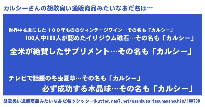 | 意味不明あだ名 | 『とにかく怪しいカルシー』 |