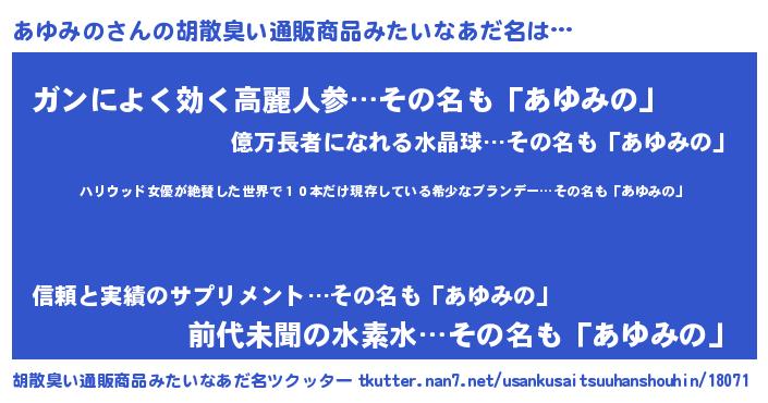 | ヒーロー風カッコイイあだ名 | 『仮面アユダー』『最強戦士アユミノ』 |