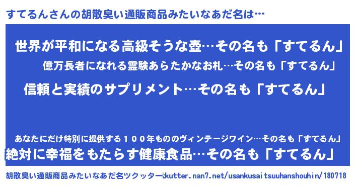 | 男性向けラノベタイトル風あだ名 | 『はたらくすてるんさま!』 |