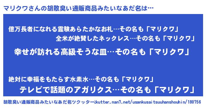 | 女子向けラノベタイトル風あだ名 | 『マリクワの雑貨屋さん』 |