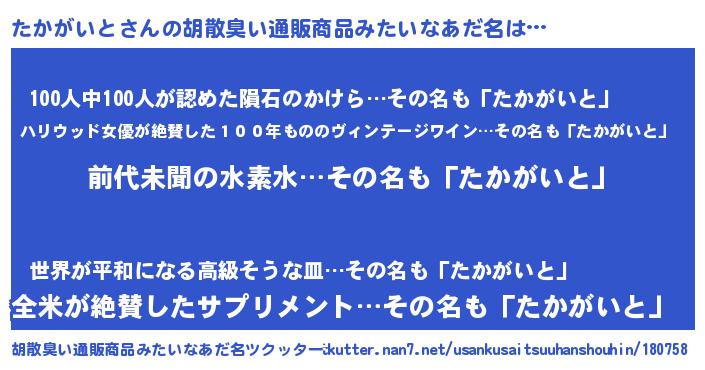 | 意味不明あだ名 | 『永久保存たかがいと』 |